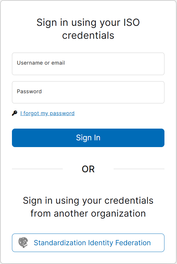 (* You may choose to login with your ISO or CEN credentials or using your federation credentials)