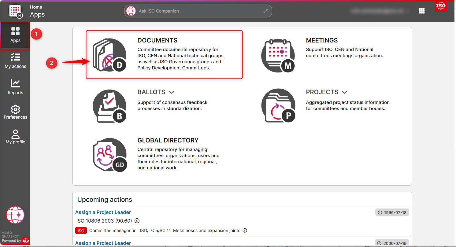 All online services can be accessed from the ISO Home portal. Once on that page, click on the Documents tile.