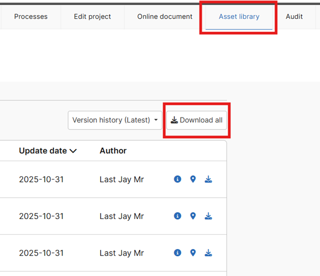 Note that if the asset existed in a past version of the document, the latter will be kept. If you wish to retrieve it, you can download it from the Asset library.