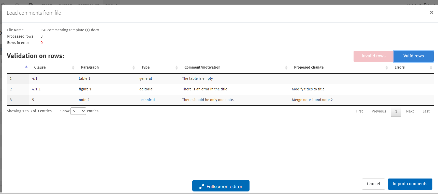 Voters can either choose to import the comments and review the comments in the online document before submission to ISO. Or to import and submit the comments directly.