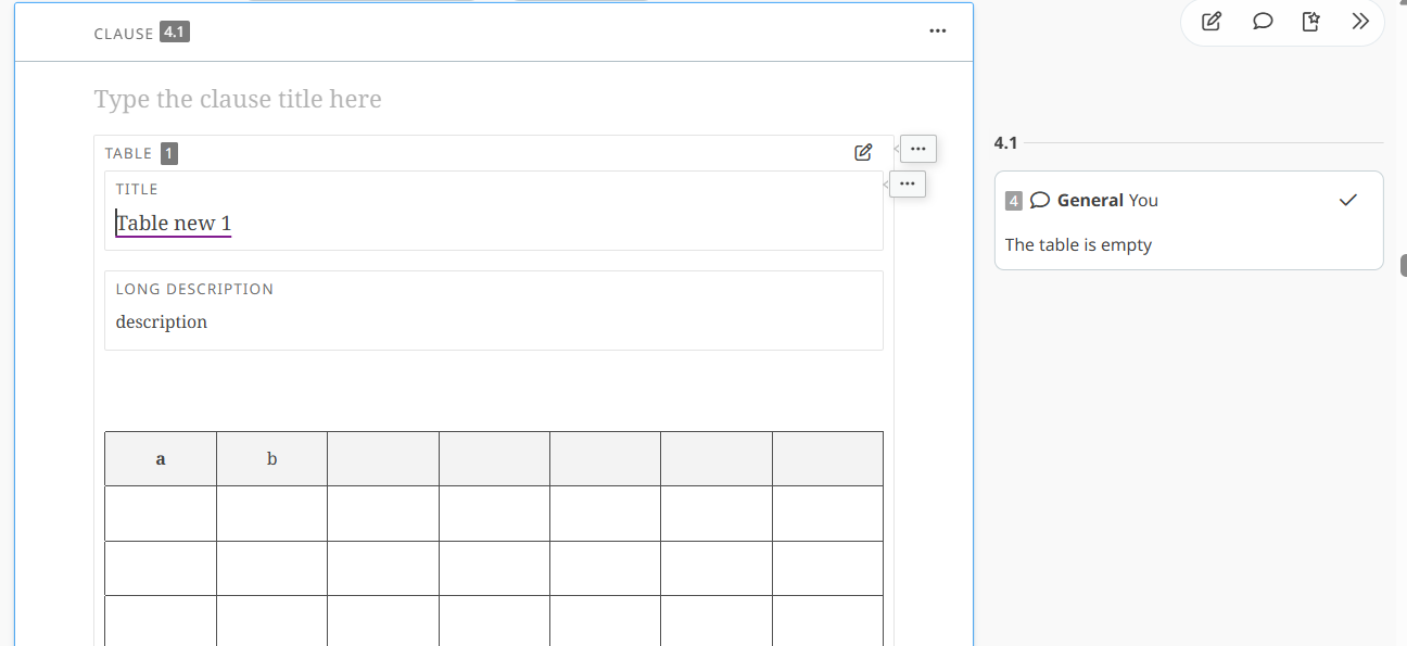 - If this column is empty or cannot be validated, the comment is attached to the title of the clause.