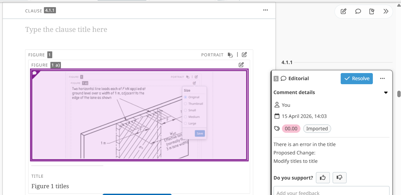 Because the propose changes feature of the editor enables commenters to select part of the text and propose changes in track change mode. When the comments are imported as “proposed changes”; the text highlighted for change is the title of the clause.