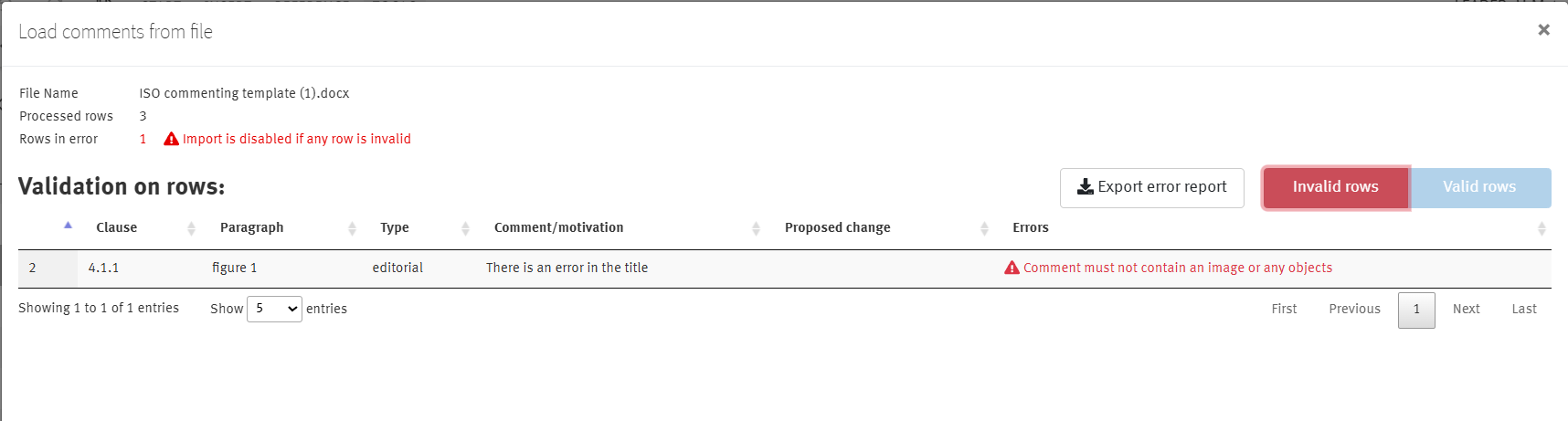 The Upload result report will tell you if any rows in the file contain information that cannot be uploaded to the platform. The validation rules are the same as when the commenting template is submitted via the balloting application.