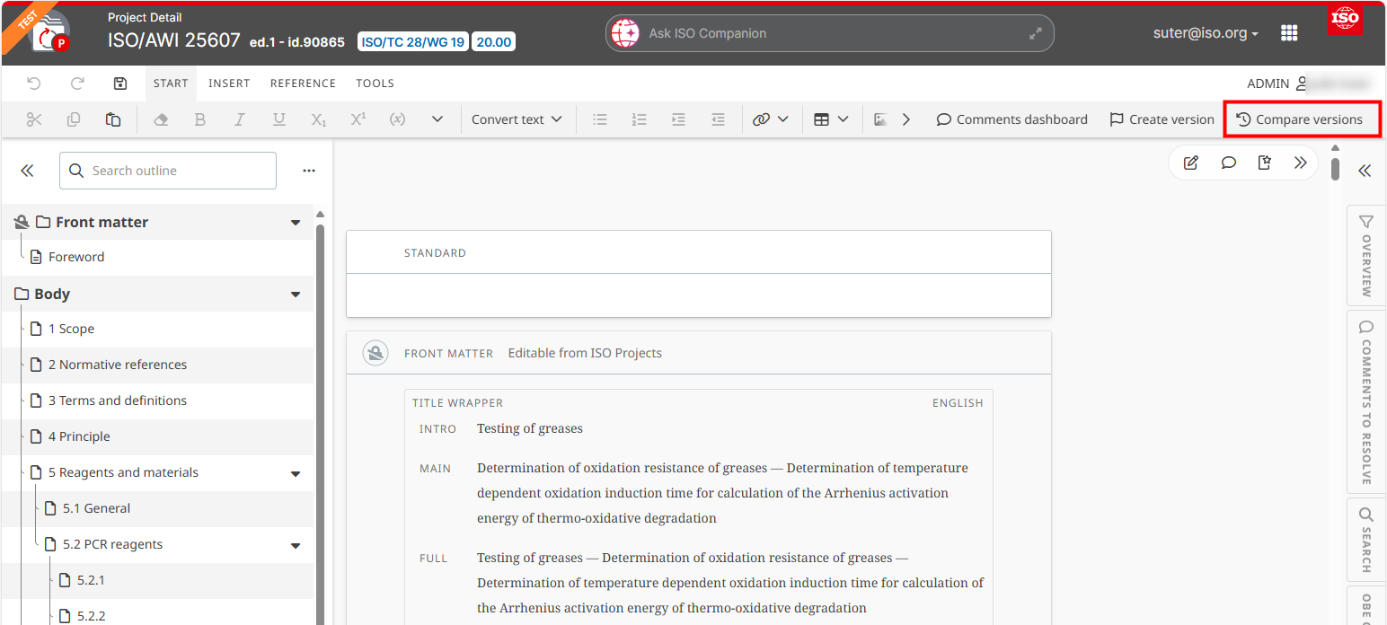 Once you have selected the two versions to be compared, you will be able to view the changes made in the document between the two versions.