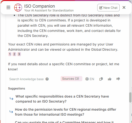 We strongly recommend starting a new conversation if you have a new topic to discuss with the ISO Companion. This will improve its understanding of the context for your questions.