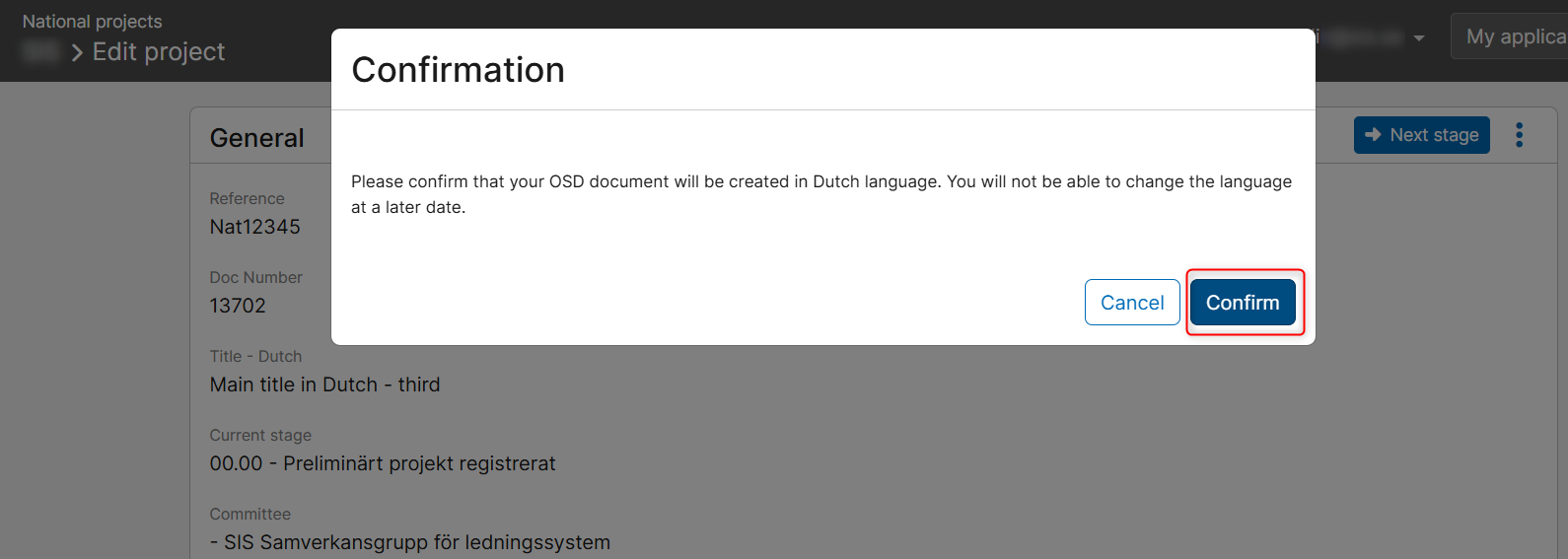 | National standard language ** | Select the main language of the national standard's content. | Mandatory for creating national projects with an online document |