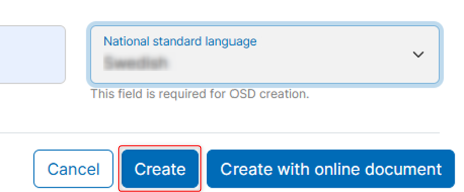 The selected national standard language for the main language of the standard's content cannot be modified after the online document has been created.