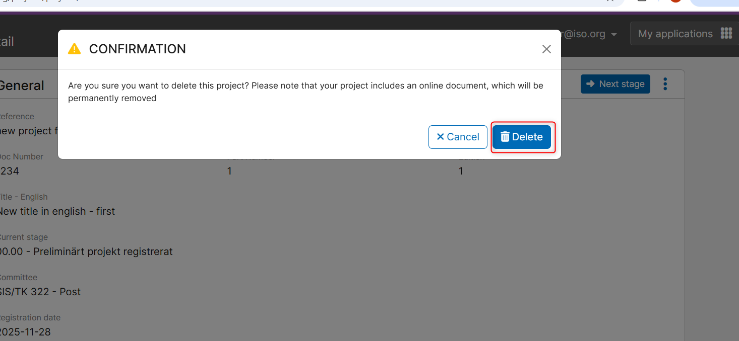 Delete national project with online document