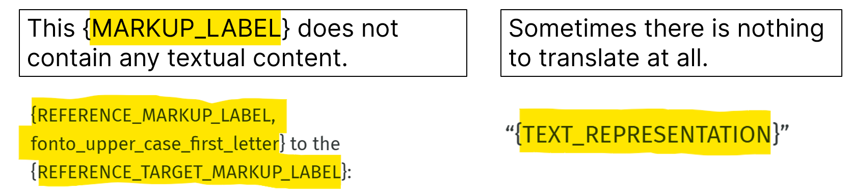 Some labels may contain only markup (for example {MARKUP_LABEL} ) and therefore require no translation.