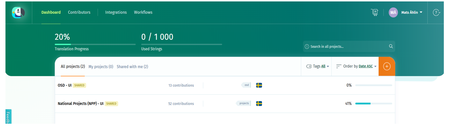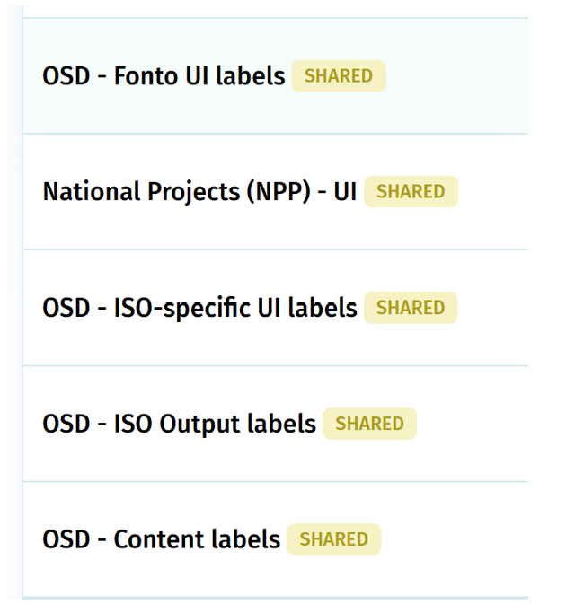 - You may see several projects depending on your responsibilities, such as: OSD UI, National Project Portal (NPP) UI, ISO-specific components