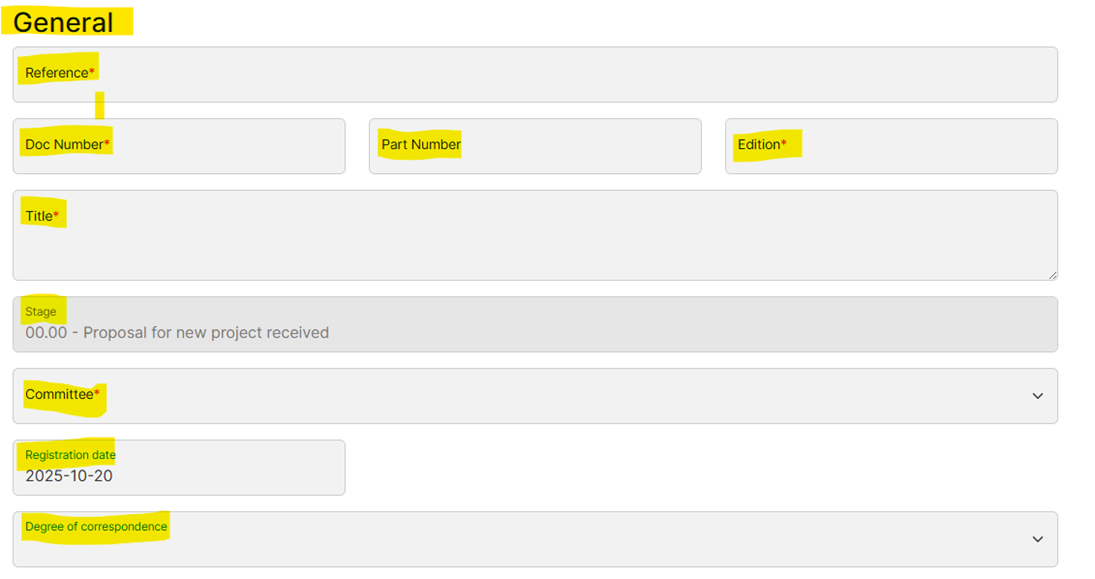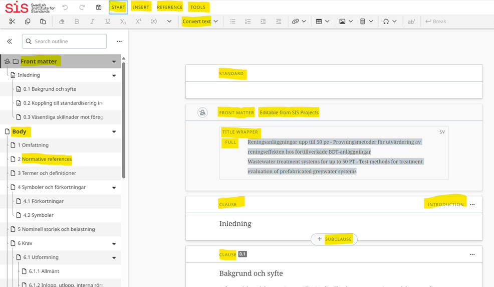 - Labels that appear in the rendered output or preview versions of the document. (Specific to ISO.)